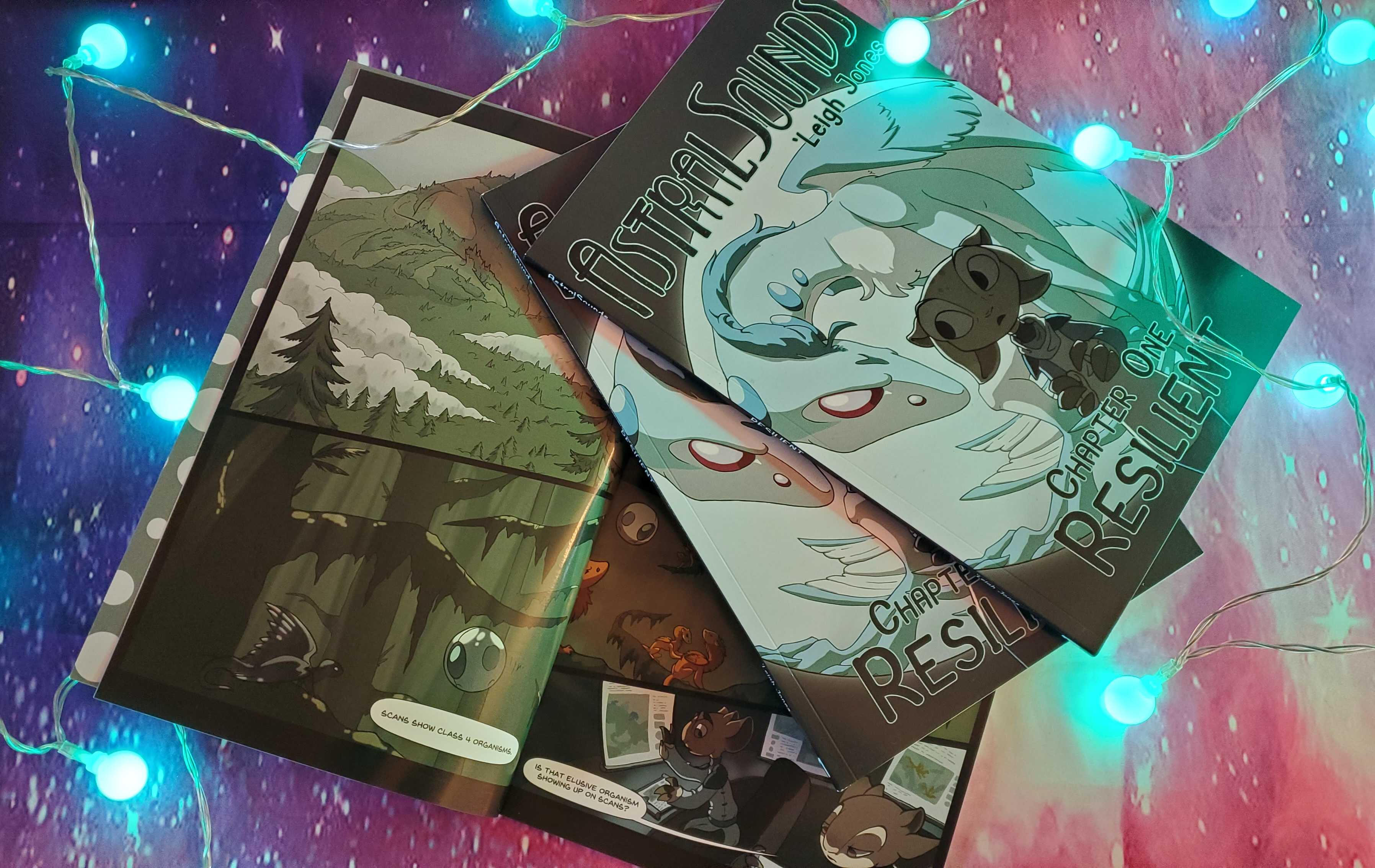 AstralSounds is a webcomic about an alien named Yunni, who discovers that perhaps the universe beyond his home planet is more complicated than he had been led to believe.Though not devoid of serious topics, AstralSounds is meant to be a fun sci-fi adventure, relatively safe for younger readers. If you like to see a story where kindness, understanding, and solidarity can help make a harsh world a little bit better, AstralSounds might just be for you.I have been posting AstralSounds to its own website since 2016. More recently, I began posting to other sites, including Webtoon and Tapas. Chapter One has now been printed as an 80-page physical book, available to buy from my online store or at conventions.