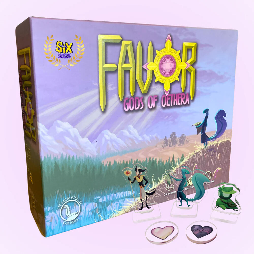 Favor: Gods of Oethera is a path-laying RPG-lite adventure board game where you play as an ambassador from one of six fantasy races, attempting to regain the favor of the gods.Favor was originally created for the 2020 Global Game Jam, and slowly turned into a fully fledged game! After a successful Kickstarter campaign in 2023, Favor is now available to purchase!