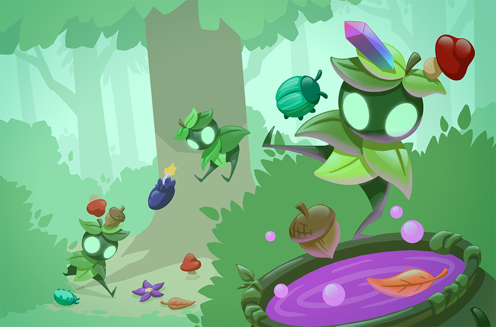 Sapling Scramble is a simple card game where the goal is to collect potion ingredients from the forest floor or other player's hands to brew potions.Sapling Scramble was originally another Global Game Jam project from 2021, which had a successful Kickstarter campaign in 2025 and is now available to purchase, along with a matching plush!